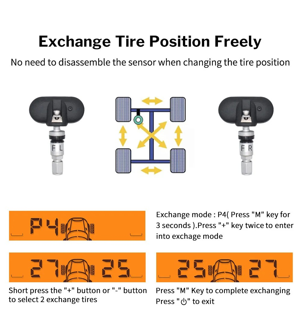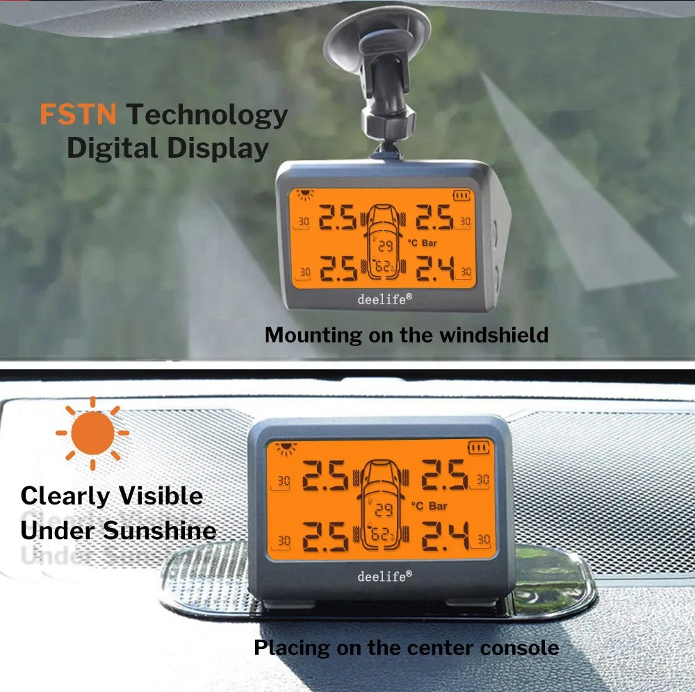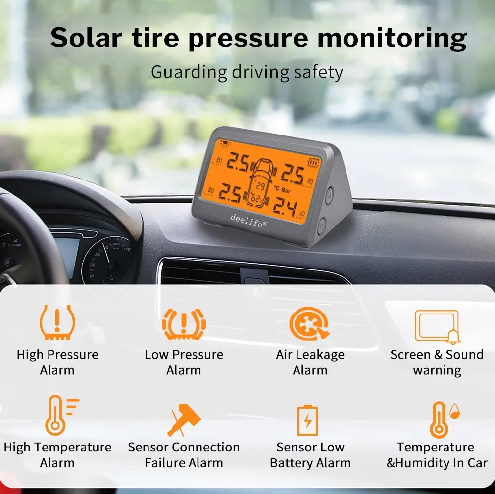 MY77 Solar Car TPMS Monitoring Tire Pressure 433MHz Internal Sensor