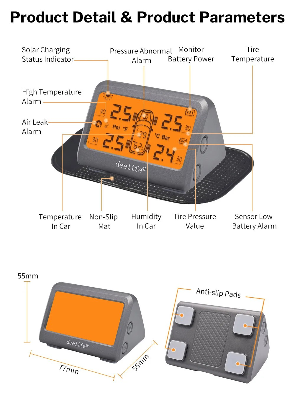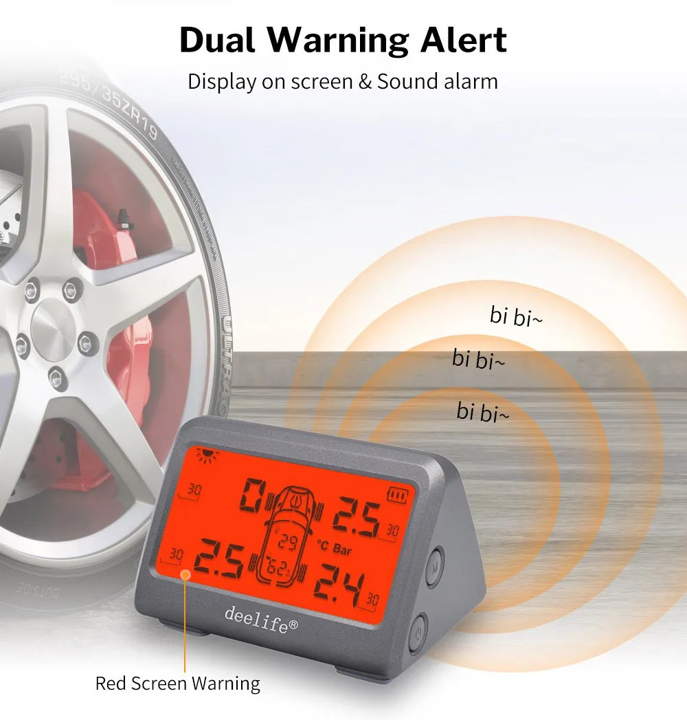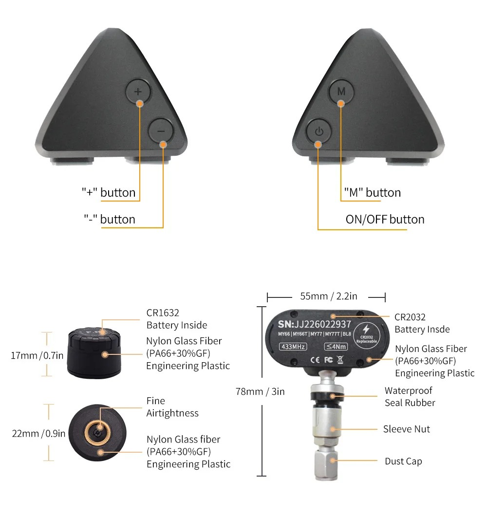 MY77 Solar Car TPMS Monitoring Tire Pressure 433MHz Internal Sensor